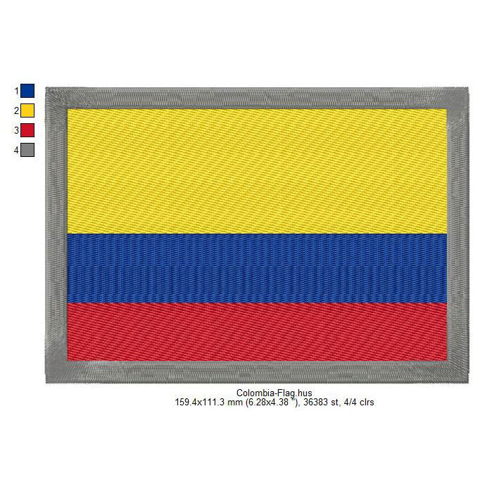 Colombia Flag Colombian Machine Embroidery Digitized Design Files | Dst | Pes | Hus | VP3
