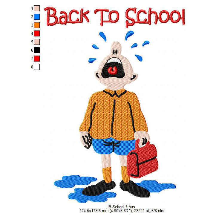 Back To School Crying Kid Machine Embroidery Digitized Design Files