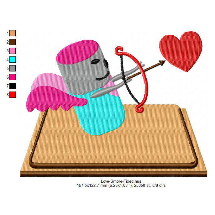 Cupid Smore Marshmallow Love Symbol Machine Embroidery Digitized Design Files