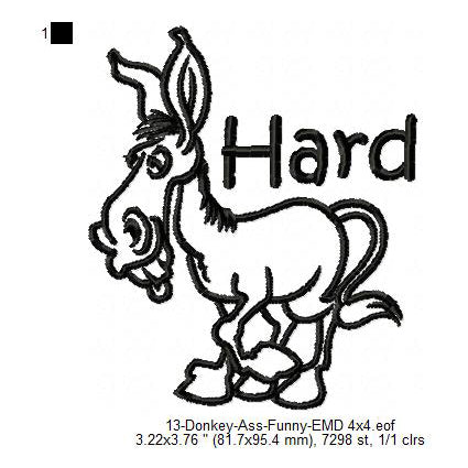 Donkey Hard Ass Line Art Machine Embroidery Digitized Design Files