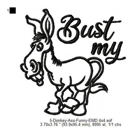 Donkey Bust My Ass Line Art Machine Embroidery Digitized Design Files