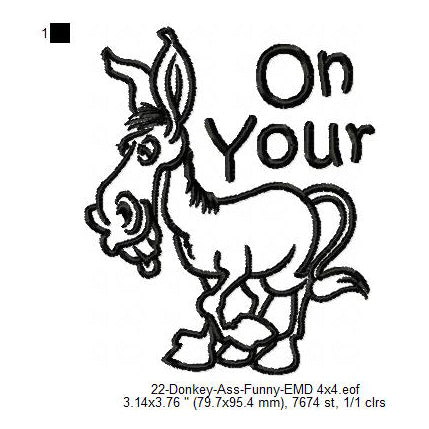 Donkey On Your Ass Line Art Machine Embroidery Digitized Design Files