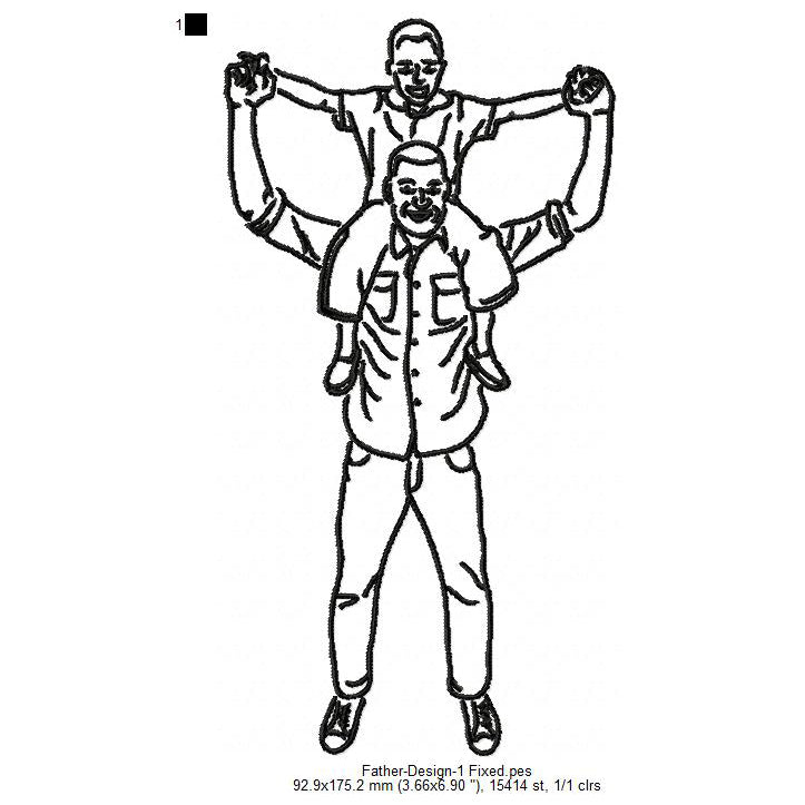 Kid Child Riding Father's Day Line Art Machine Embroidery Digitized Design Files