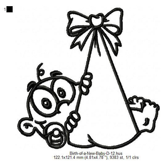 New Born Baby Child Line Art Machine Embroidery Digitized Design Files