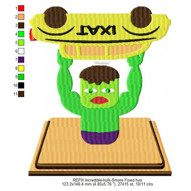 Incredible Hulk Smore Marshmallow Cartoon Machine Embroidery Digitized Design Files