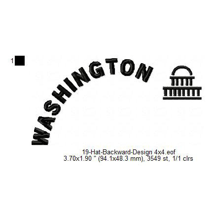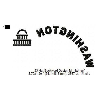 Washington Hat Cap Backward Machine Embroidery Digitized Design Files