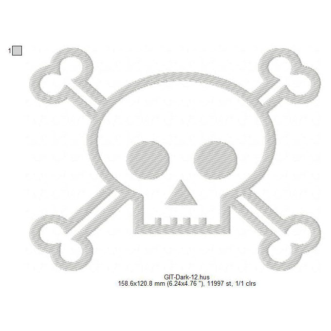 Skull Line Art Icon Halloween Glow In The Dark Machine Embroidery Digitized Design Files