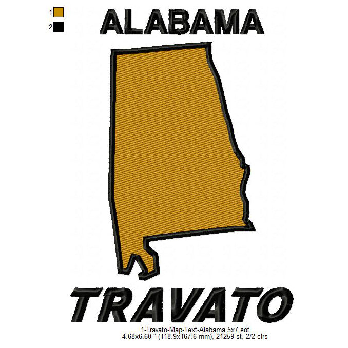 Travato Alabama State Map Designs Machine Embroidery Digitized Design Files
