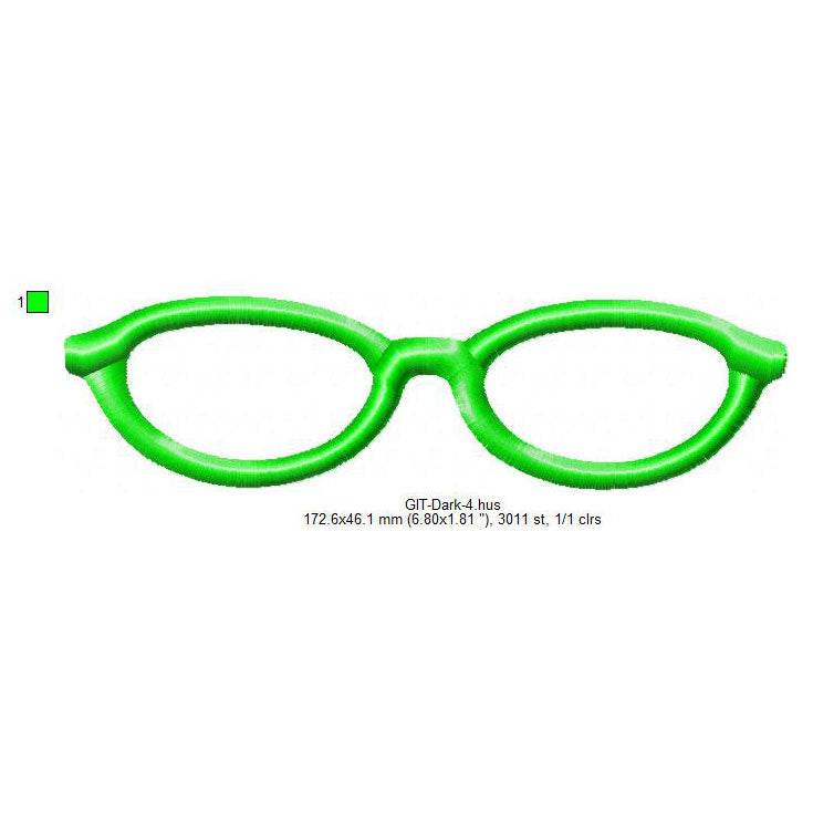 Eye Glass Frame Line Art Glow In The Dark Machine Embroidery Digitized Design Files