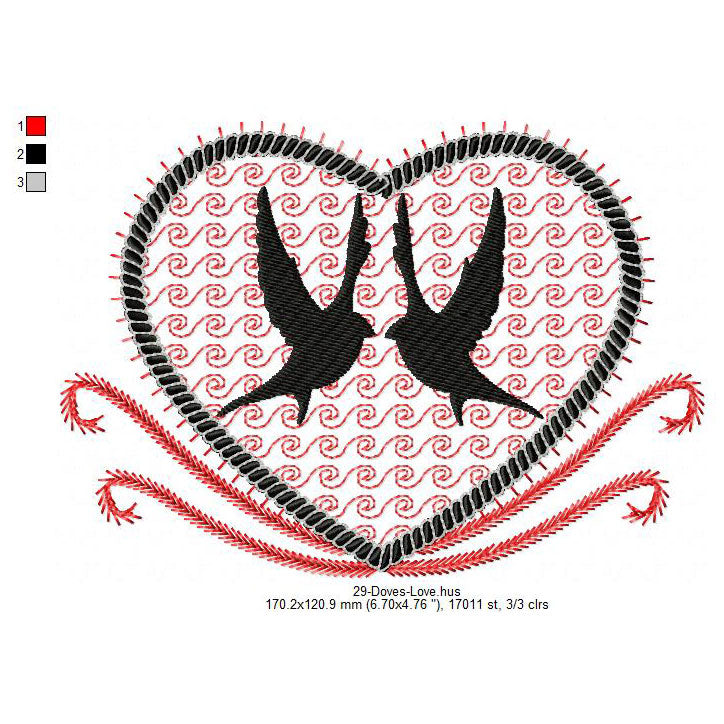 Couple Dove Bird Making Love Valentines Day Machine Embroidery Digitized Design Files
