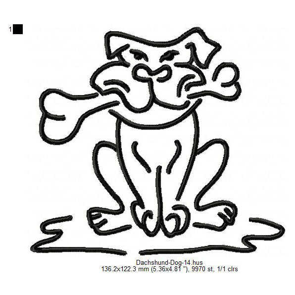 Dachshund Little Dog With Bone Line Art Silhouette Machine Embroidery Digitized Design Files
