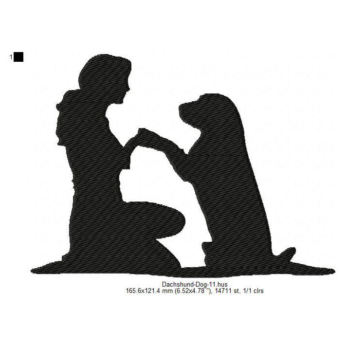 Dachshund Little Dog With Owner Silhouette Machine Embroidery Digitized Design Files