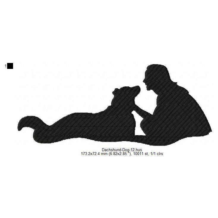 Dachshund Little Dog With Owner Silhouette Machine Embroidery Digitized Design Files