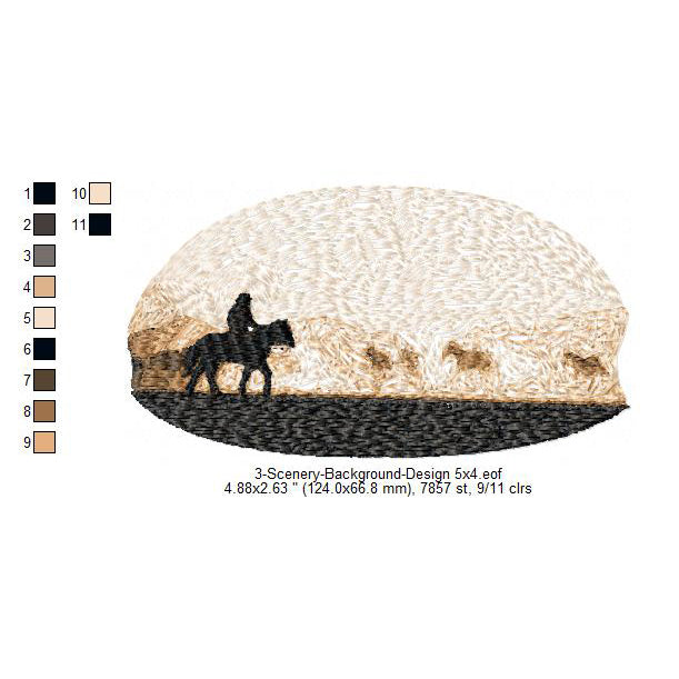 Desert Cowboy Scenery Background Machine Embroidery Digitized Design Files