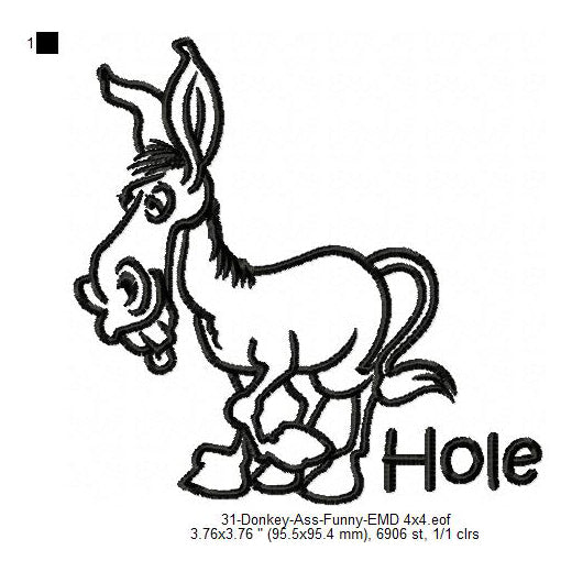 Donkey Ass Hole Line Art Machine Embroidery Digitized Design Files