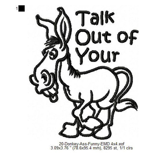 Donkey Talk Out of Your Ass Line Art Machine Embroidery Digitized Design Files