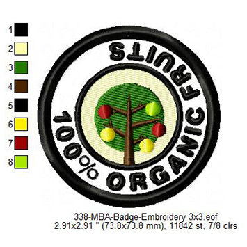 100% Organic Fruits Merit Adulting Badge Machine Embroidery Digitized Design Files