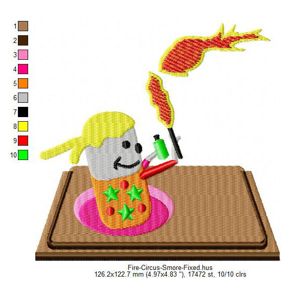 Fire Circus Smore Marshmallow Cartoon Machine Embroidery Digitized Design Files