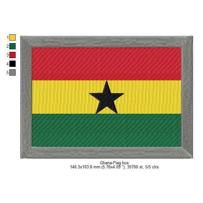 Ghana Flag Ghanaian Machine Embroidery Digitized Design Files | Dst | Pes | Hus | VP3
