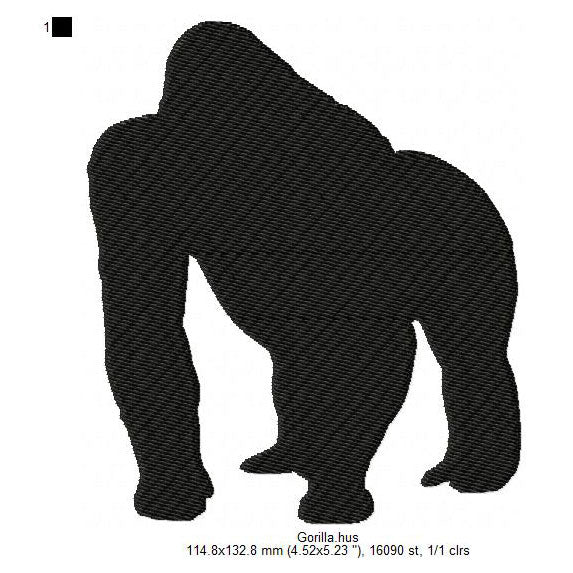 Gorilla Wild Jungle Animal Silhouette Machine Embroidery Digitized Design Files