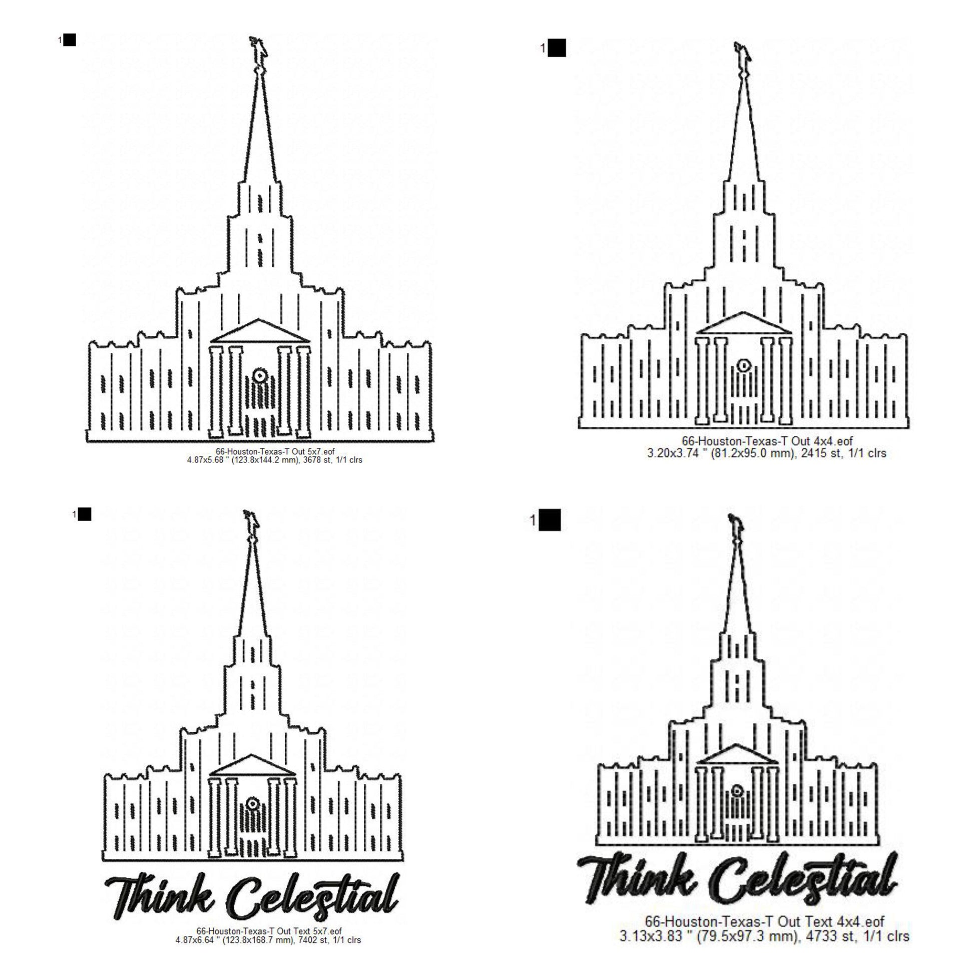 Houston Texas LDS Temple Outline Machine Embroidery Digitized Design Files