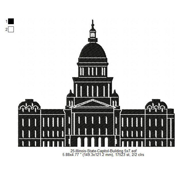 Illinois State Capitol Building Silhouette Machine Embroidery Digitized Design Files