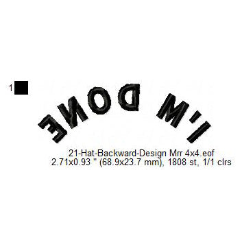 I'm Done Hat Cap Backward Machine Embroidery Digitized Design