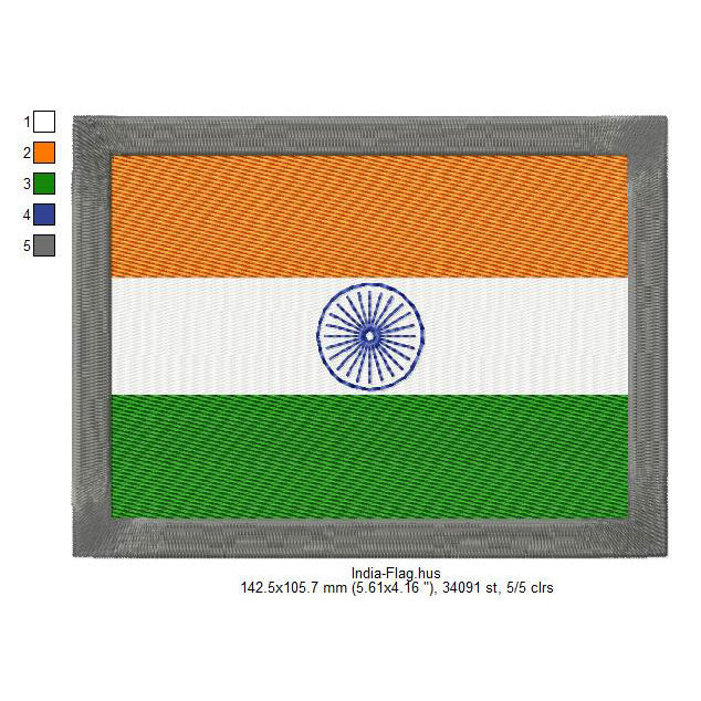 India Flag Indian Machine Embroidery Digitized Design Files | Dst | Pes | Hus | VP3