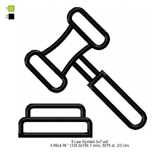 Judge Gavel Law Symbol Shadow Silhouette Machine Embroidery Digitized Design Files