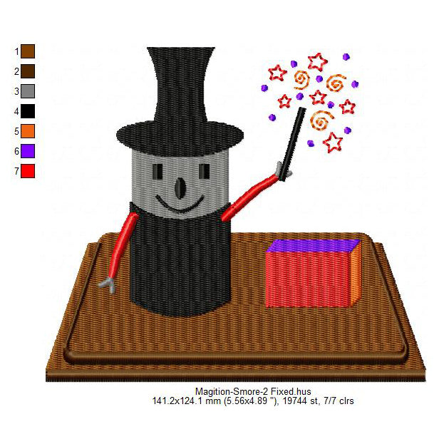 Magician Smore Marshmallow Cartoon Machine Embroidery Digitized Design Files
