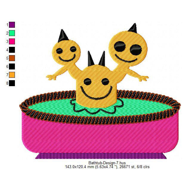 Monsters Bathtub Machine Embroidery Digitized Design Files