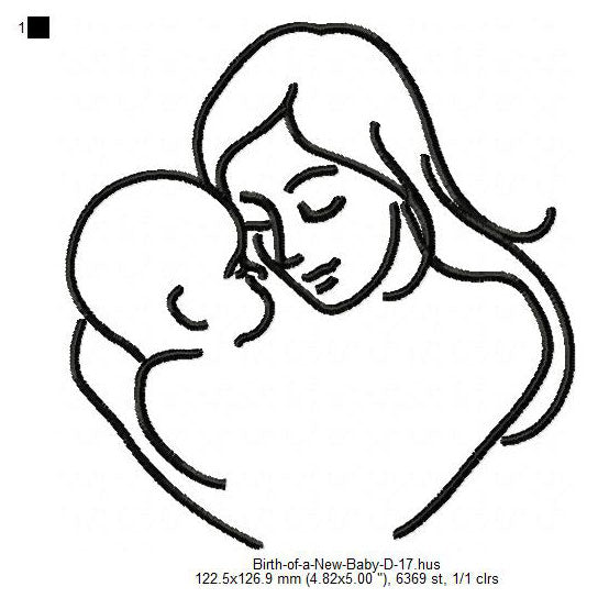 Mother Care For New Born Baby Toddler Line Art Machine Embroidery Digitized Design Files