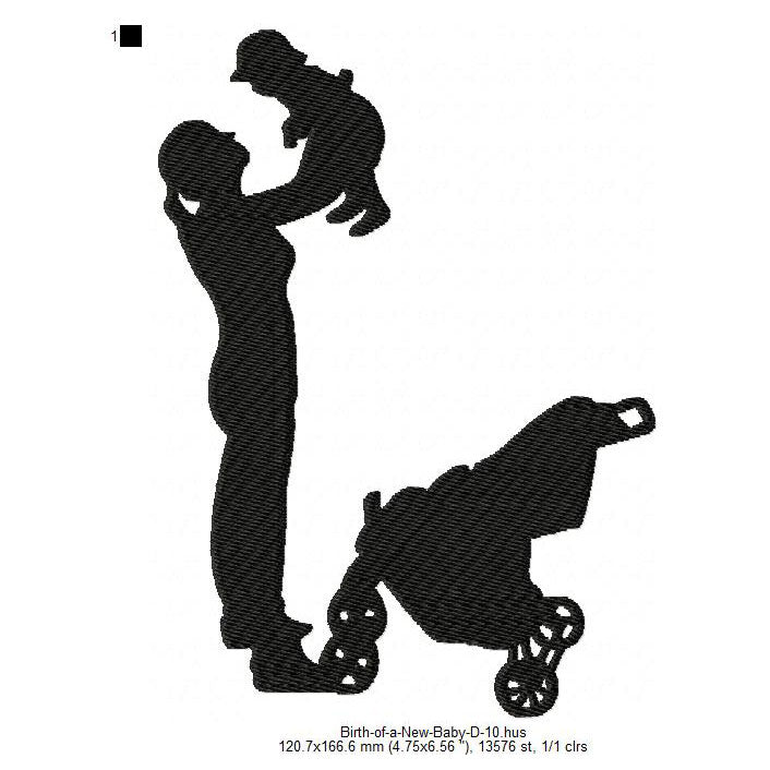 Mother With New Born Child Baby Stroller & Palms Silhouette Machine Embroidery Digitized Design Files