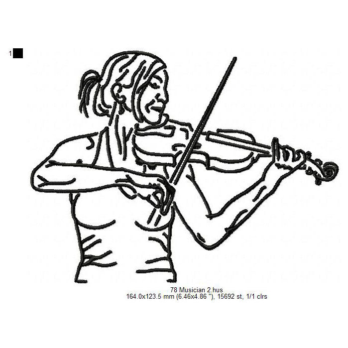 Violin Violinist Musician Line Art Machine Embroidery Digitized Design Files