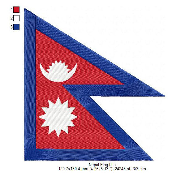 Nepal Flag Nepalis Machine Embroidery Digitized Design Files | Dst | Pes | Hus | VP3