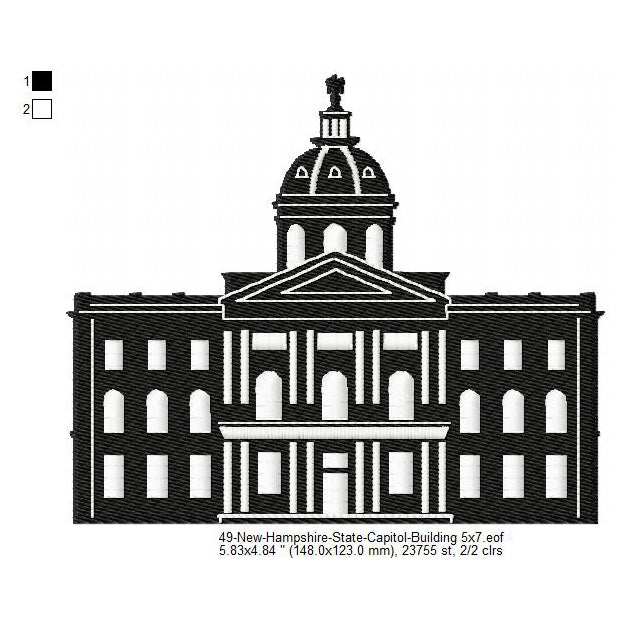 New Hampshire State Capitol Building Silhouette Machine Embroidery Digitized Design Files