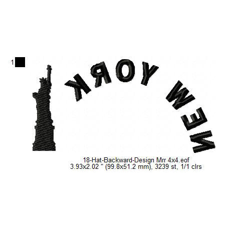 New York Hat Cap Backward Machine Embroidery Digitized Design Files
