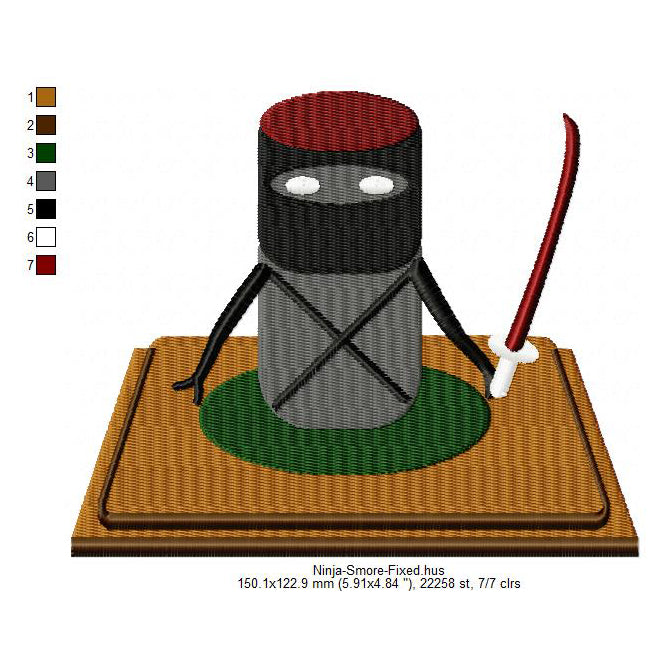 Ninja Smore Marshmallow Cartoon Machine Embroidery Digitized Design Files