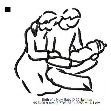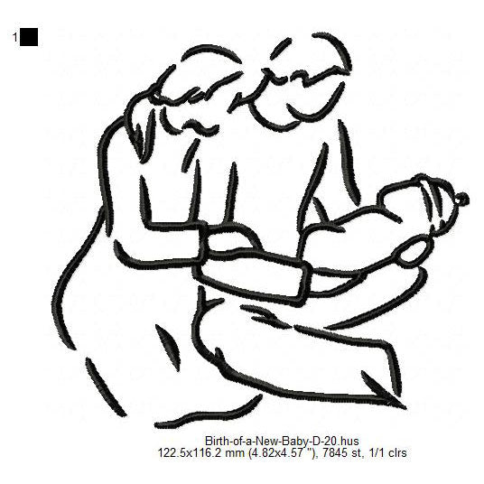 Parents Care For New Born Baby Toddler Line Art Machine Embroidery Digitized Design Files