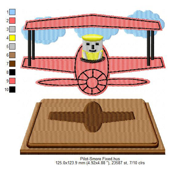 Pilot Smore Marshmallow Cartoon Machine Embroidery Digitized Design Files