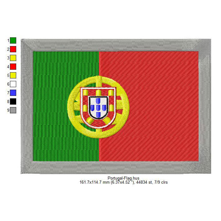 Portugal Flag Portuguese Machine Embroidery Digitized Design Files | Dst | Pes | Hus | VP3
