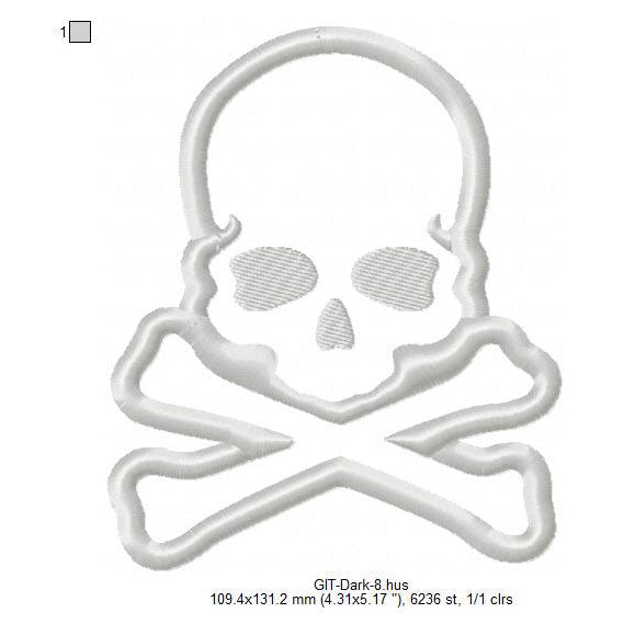 Skull Line Art Glow In The Dark Machine Embroidery Digitized Design Files