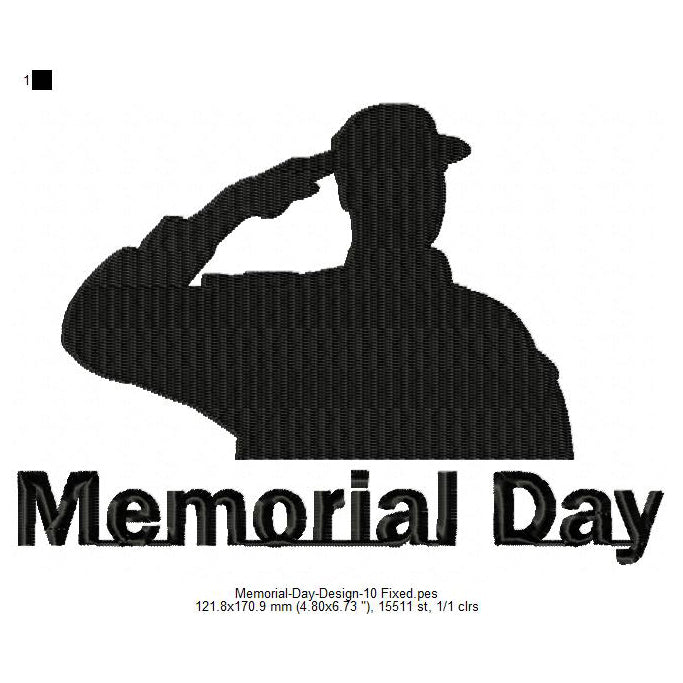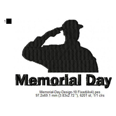 Soldier Salute Silhouette Memorial Day May 26 Machine Embroidery Digitized Design Files