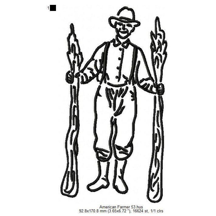 USA Farmer Harvesting Crops Line Art Machine Embroidery Digitized Design Files