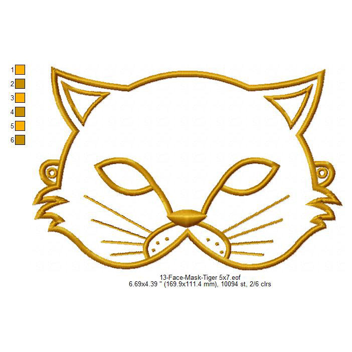 Tiger Face Eye Mask Machine Embroidery Digitized Design Files