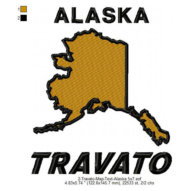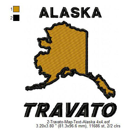 Travato Alaska State Map Designs Machine Embroidery Digitized Design Files