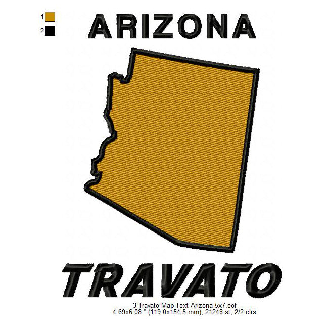 Travato Arizona State Map Designs Machine Embroidery Digitized Design Files