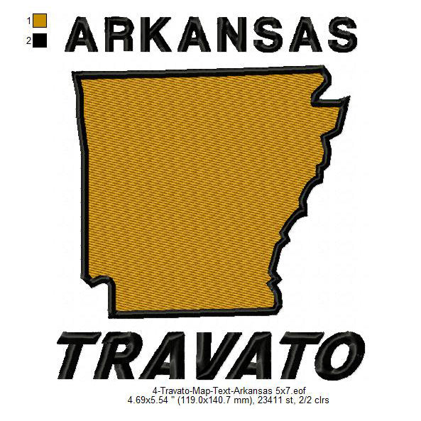 Travato Arkansas State Map Designs Machine Embroidery Digitized Design Files