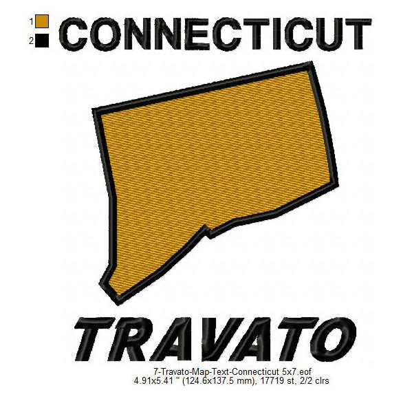 Travato Connecticut State Map Designs Machine Embroidery Digitized Design Files