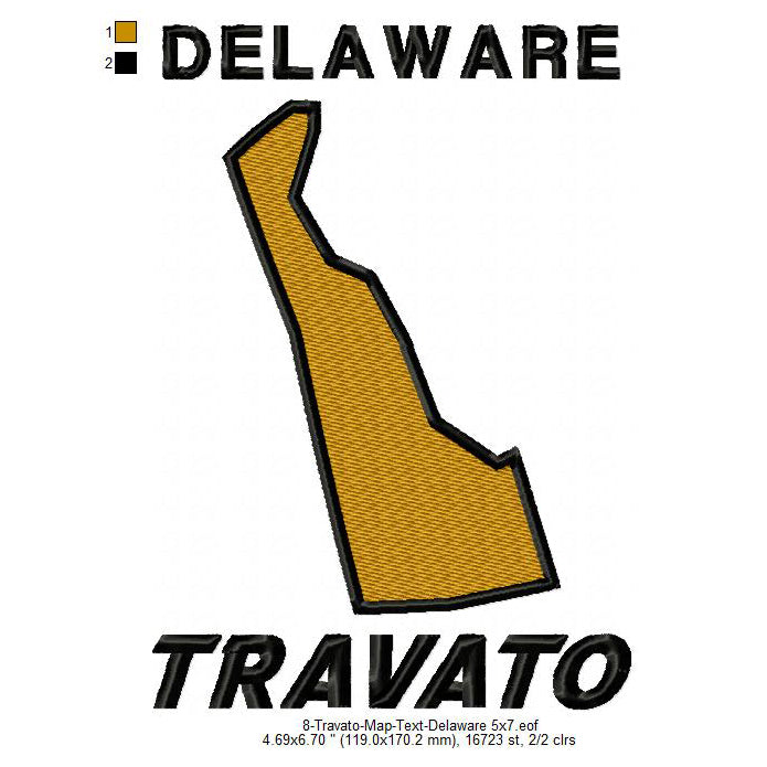Travato Delaware State Map Designs Machine Embroidery Digitized Design Files